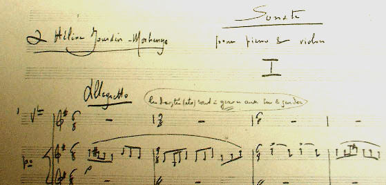 Ravel reflected on the independence and incompatibility of the two instruments which he saw as fundamental to his writing in the Sonata: “Je me suis imposé cette indépendance en écrivant une Sonate pour piano et violon, instruments essentiellement incompatibles, et qui, loin d’équilibrer leurs contrastes, accusent ici cette même incompatibilité.” (Ravel, [1938]).